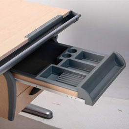 Перевернув накладную линейку Вы получаете барьер против соскальзывания книг, тетрадей или альбомов при поднятой столешнице. |